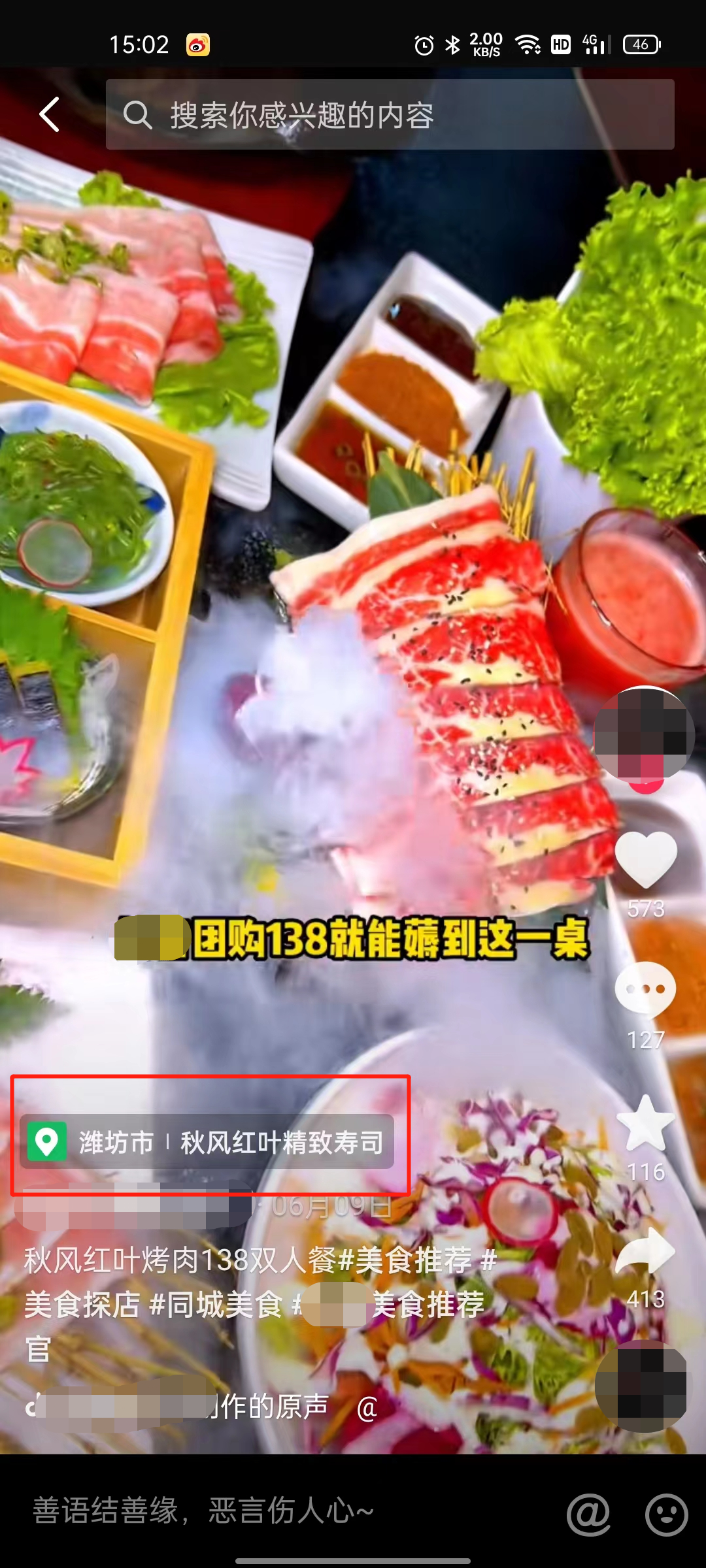 今天就再给大家带来一个【餐饮】行业的案例,是由夺冠生活圈小程序在潍坊的站点打造的,商家名字叫做——秋风红叶烤肉日料店。