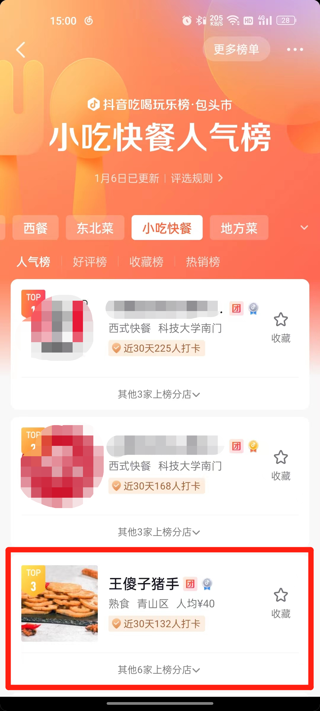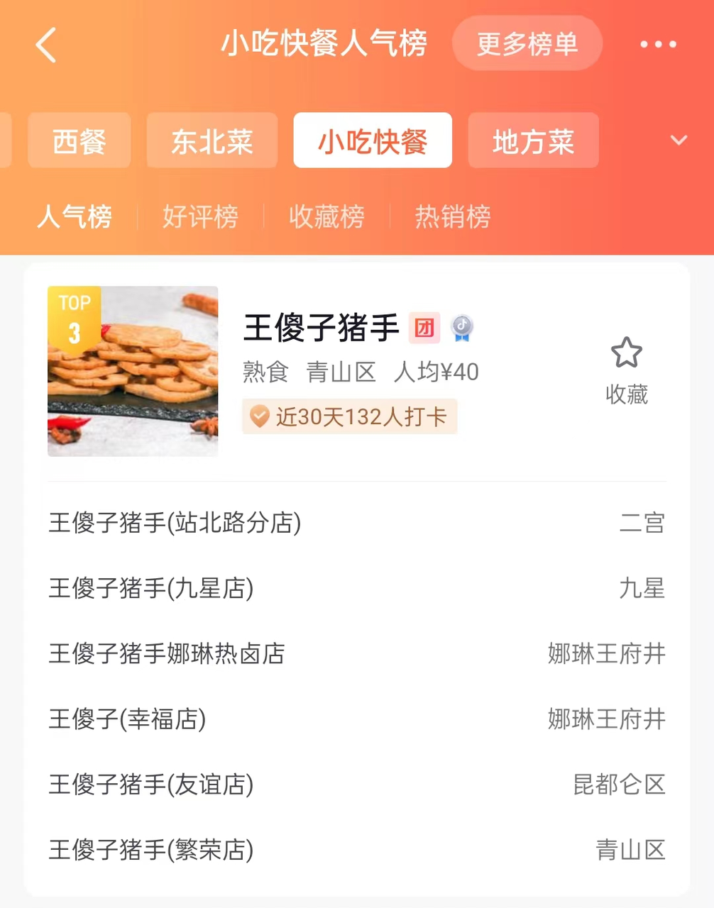 POI小吃快餐人气榜第3名
