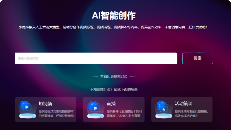 AI智能生成创意文案、视频脚本、创意标题、活动话题、拍摄思路,助力合作伙伴和商家更轻松地产出更多优质视频内容
