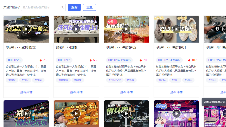 提供不同行业热门脚本模板,自带文案和拍摄指导,商家可一键应用,跟着教程拍出同样热门、优质的视频,大大提高效率和效果