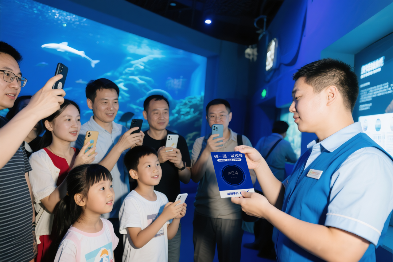 • 流量峰值应对:增设临时NFC点位,避免高峰期拥堵;安排“海洋人偶”巡游,手持便携式NFC卡片与游客互动。