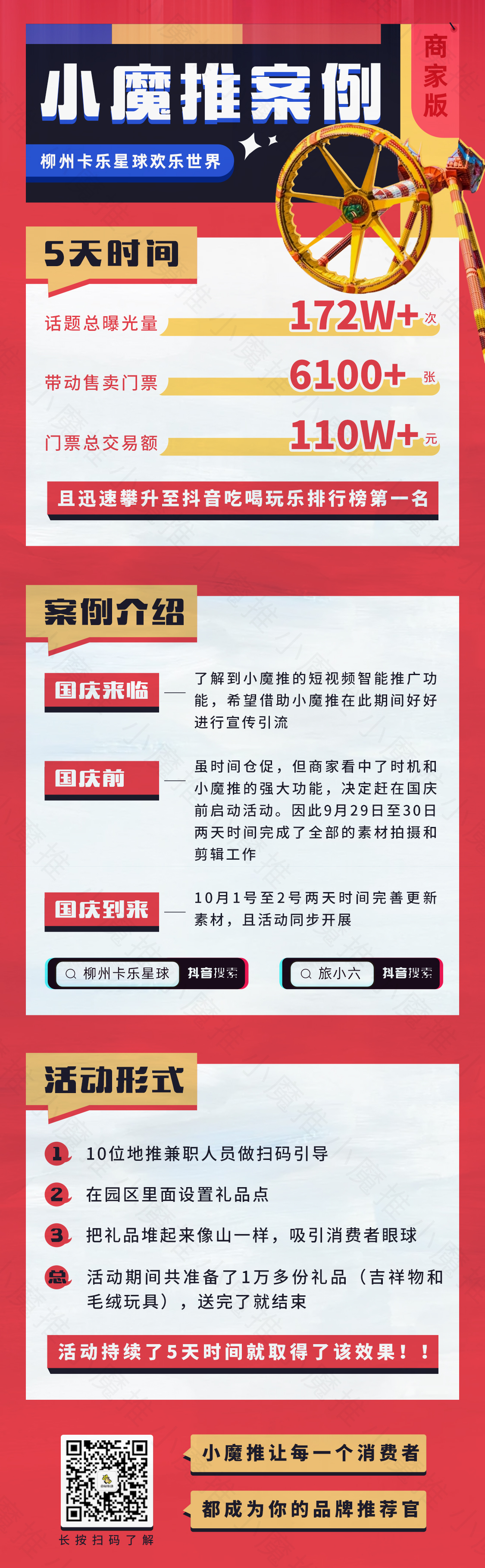 1万多份礼品全部送完,人流量最多的一天参与小魔推扫码发视频活动的人有2800+