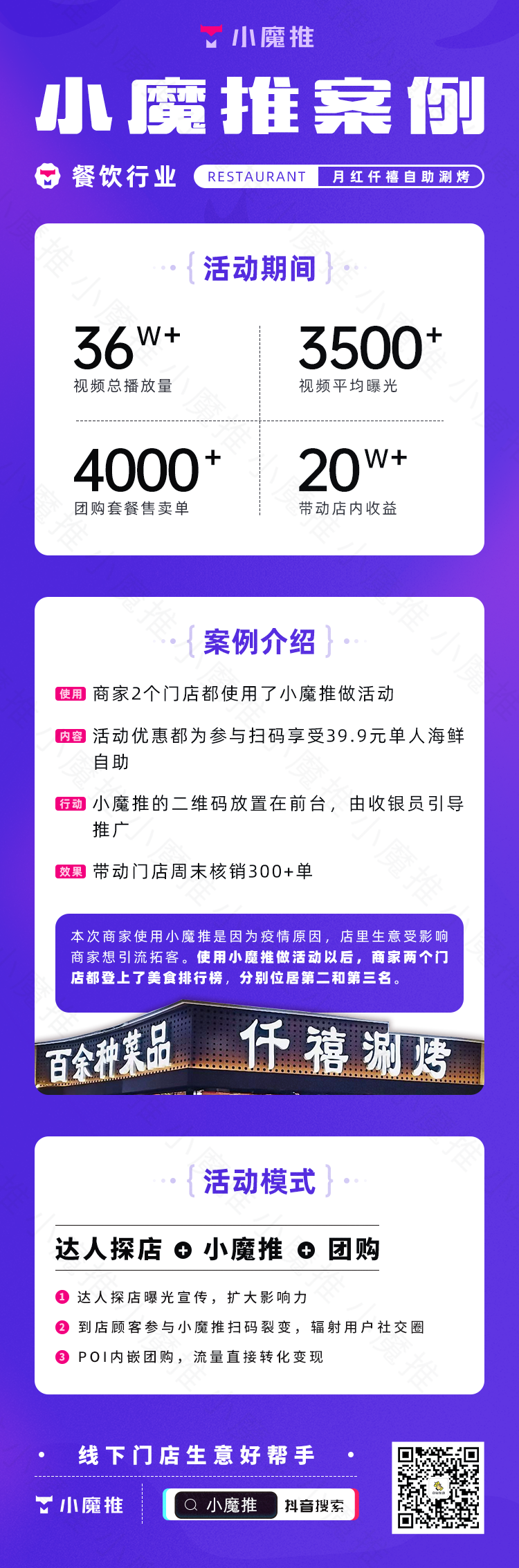 本次商家使用小魔推是因为疫情原因,店里生意受影响,商家想引流拓客。