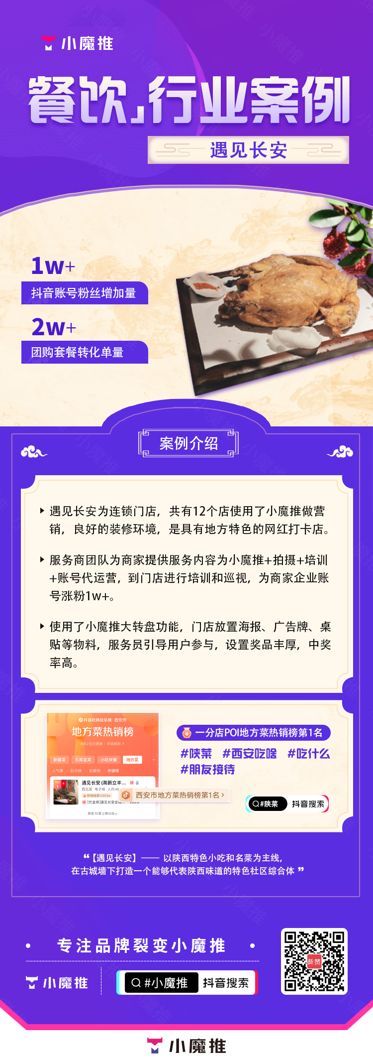 遇见长安为连锁门店,共有12个店使用了小魔推做营销,良好的装修环境,是具有地方特色的网红打卡店。