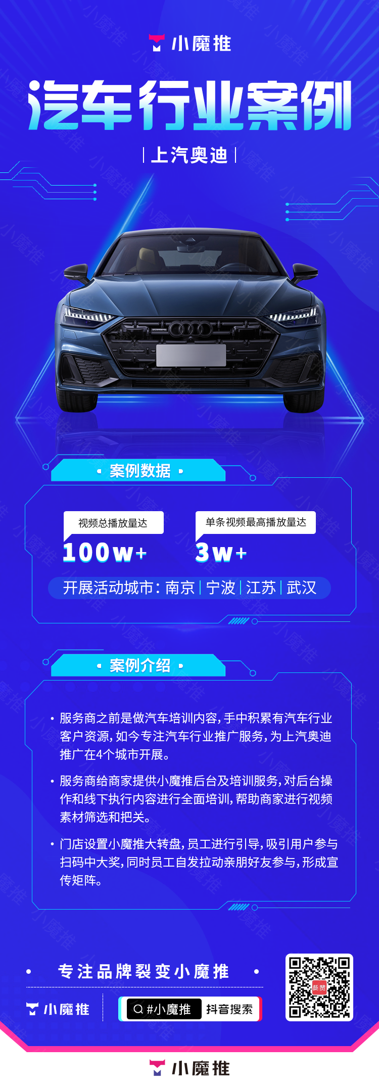 服务商之前是做汽车培训内容,手中积累有汽车行业客户资源,如今专注汽车行业推广服务,为上汽奥迪推广在4个城市开展。