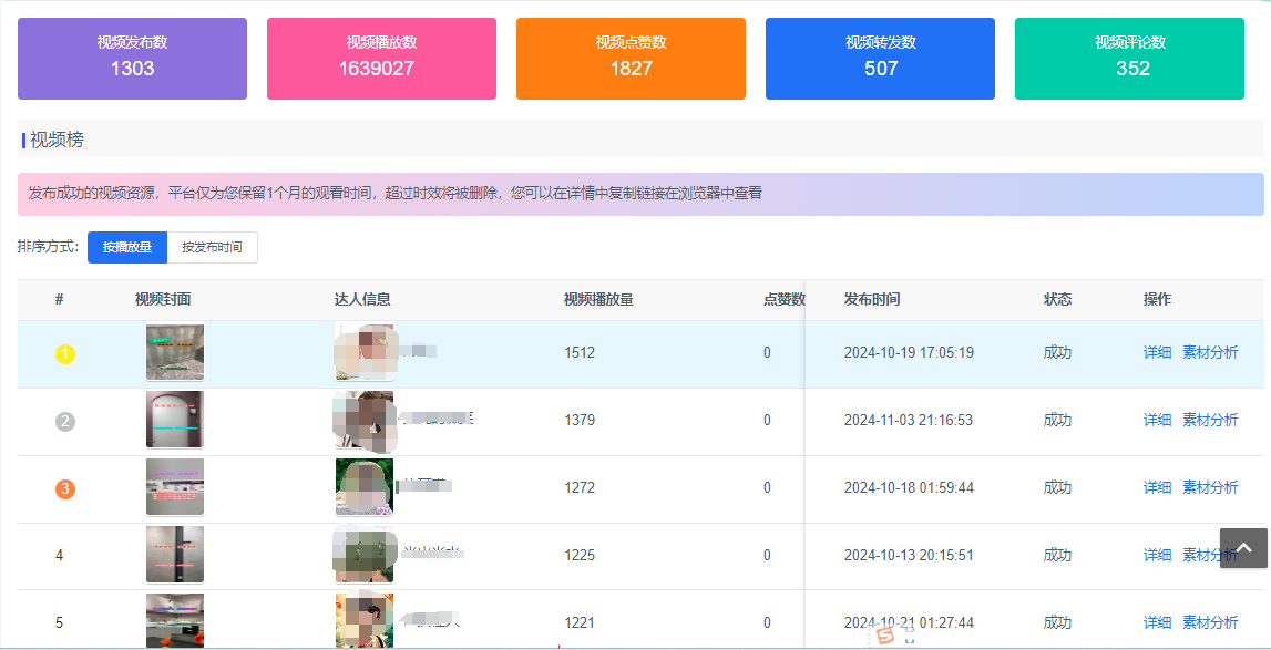 最终成功发布了 1303 条视频,获得了164 万视频曝光和 225 万话题曝光。这些成果不仅为公司带来了大量的潜在客户咨询,也提升了公司在市场中的品牌知名度和竞争力。