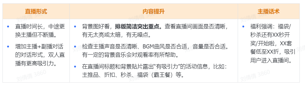 ·核心提升思路:让用户迅速获得对直播间内容的预期,并被吸引进入直播间,可以从以下几方面进行改进: